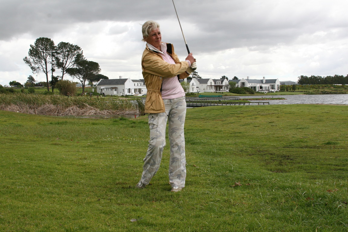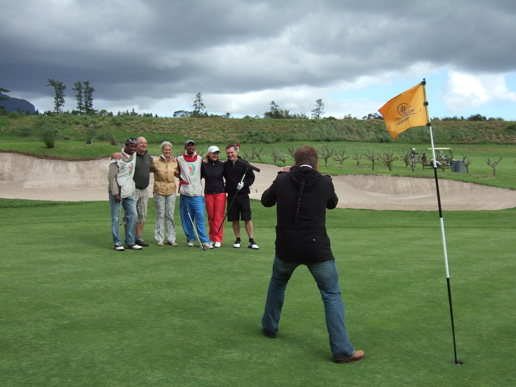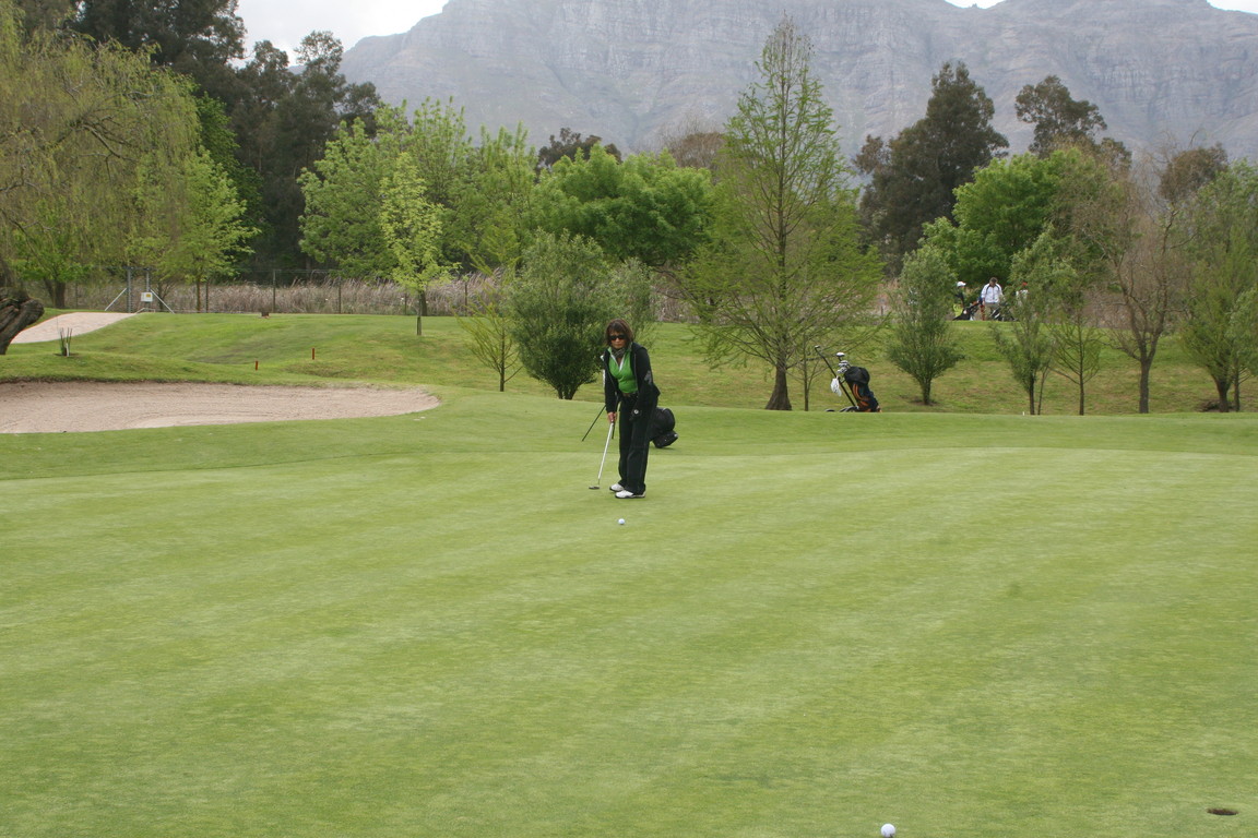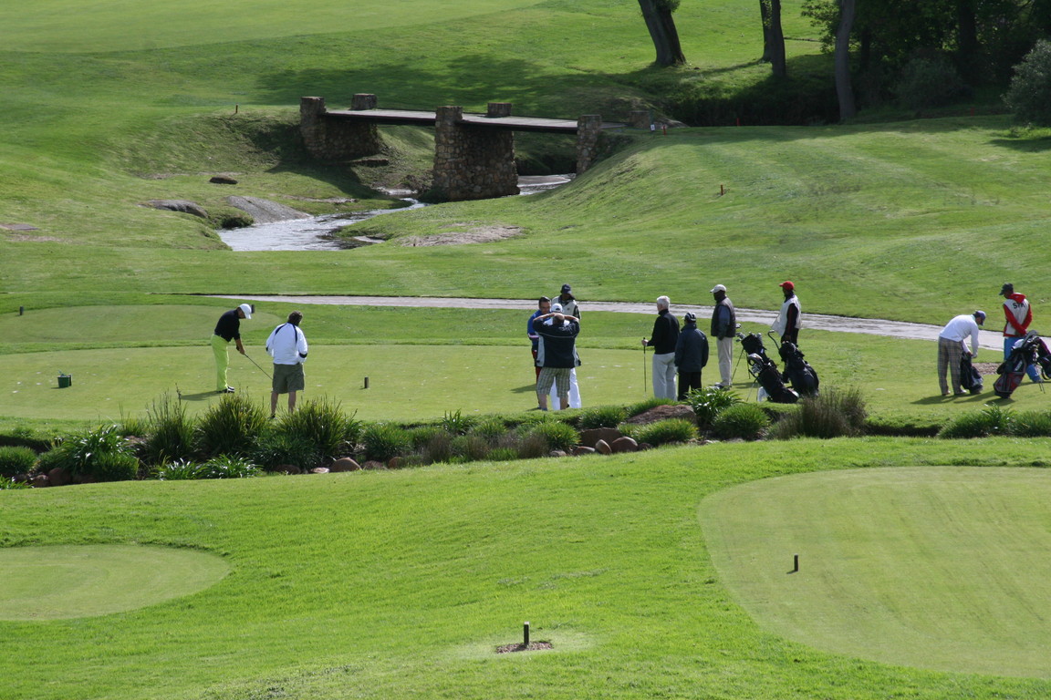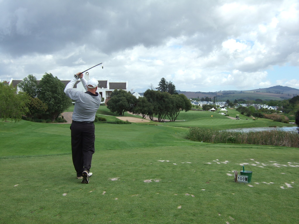 In Südafrika werden die Bunkerharken nicht wie bei uns längs der Bunkerkante in den Sand gelegt, sondern es gibt spezielle Bodenhülsen nahe dem Bunker, in die die Harke senkrecht gesteckt wird. So bietet die Harke weniger Angriffsfläche und man muß sich nicht zum Aufheben bücken.