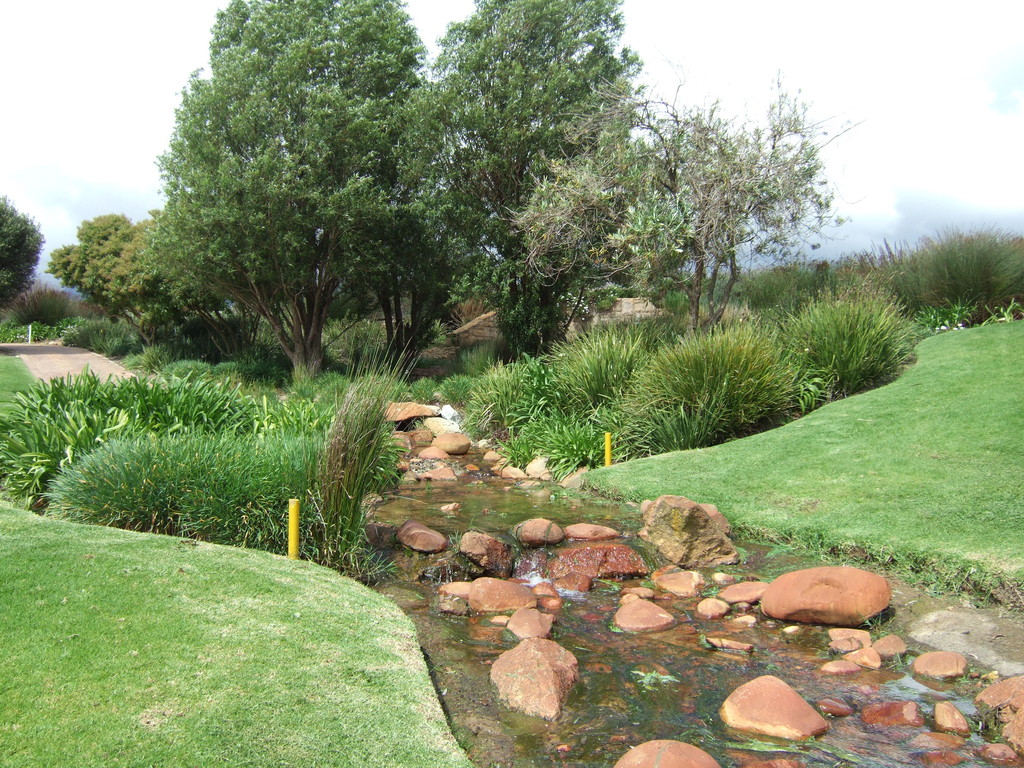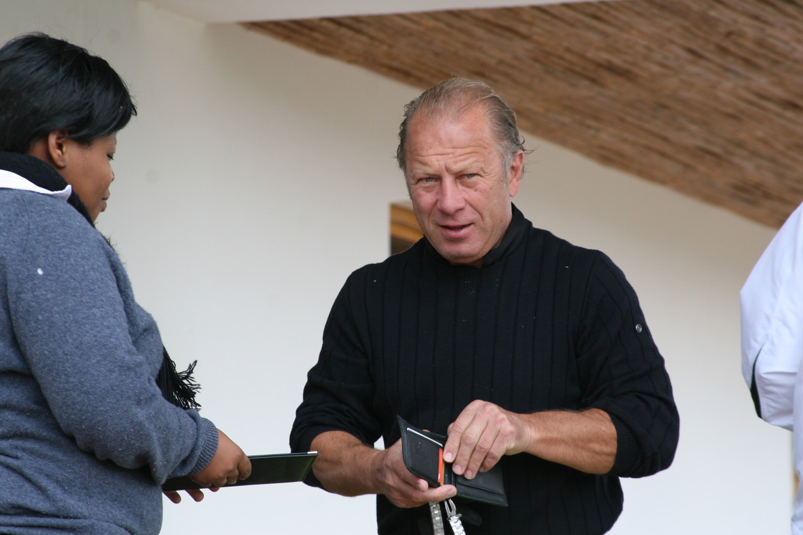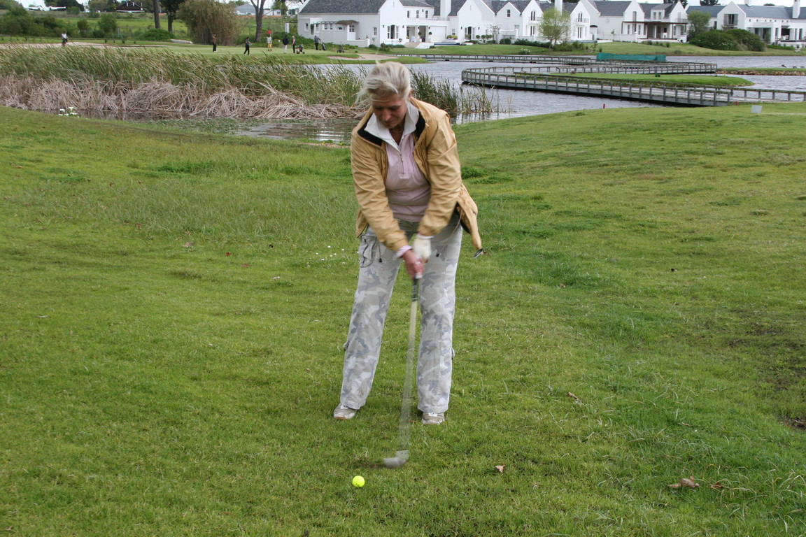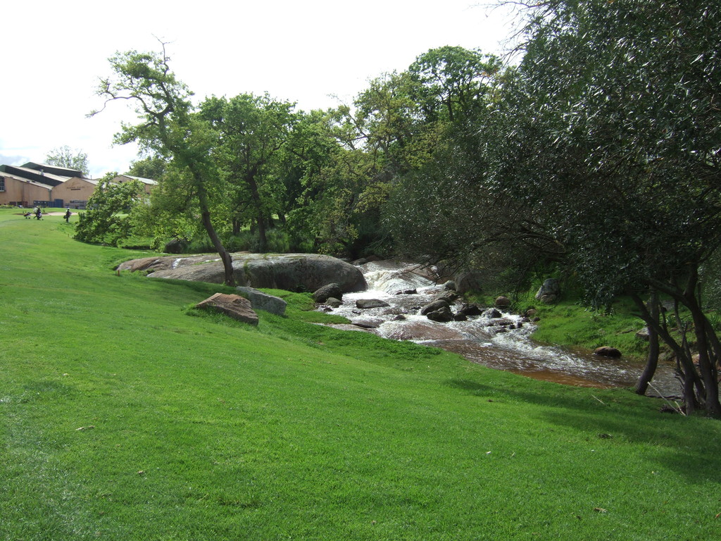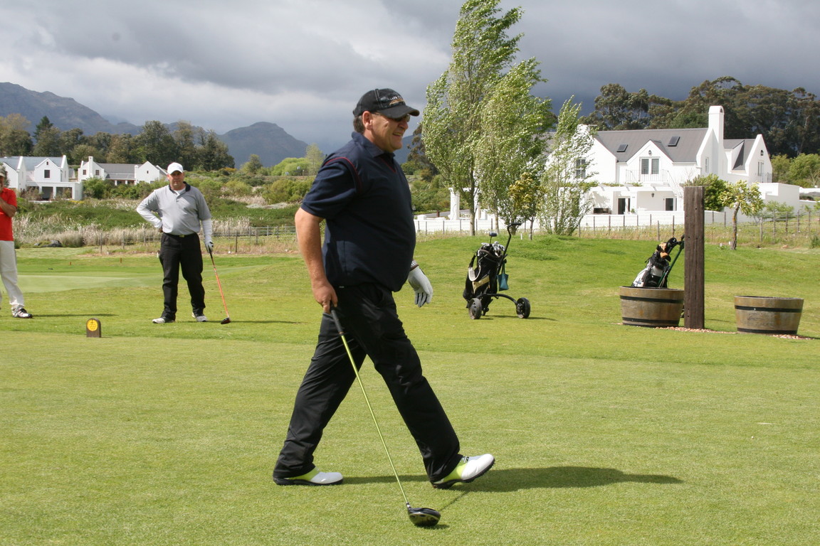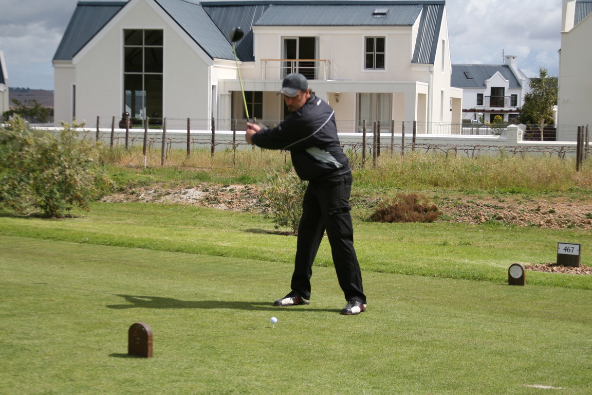 In Südafrika werden die Bunkerharken nicht wie bei uns längs der Bunkerkante in den Sand gelegt, sondern es gibt spezielle Bodenhülsen nahe dem Bunker, in die die Harke senkrecht gesteckt wird. So bietet die Harke weniger Angriffsfläche und man muß sich nicht zum Aufheben bücken.