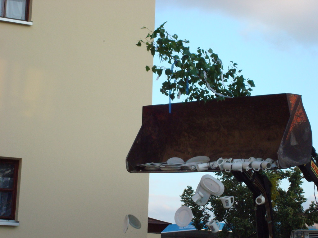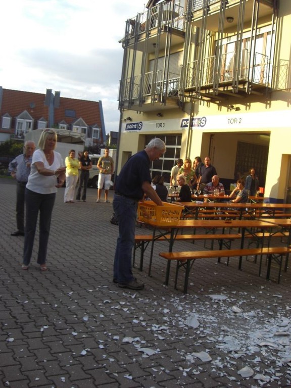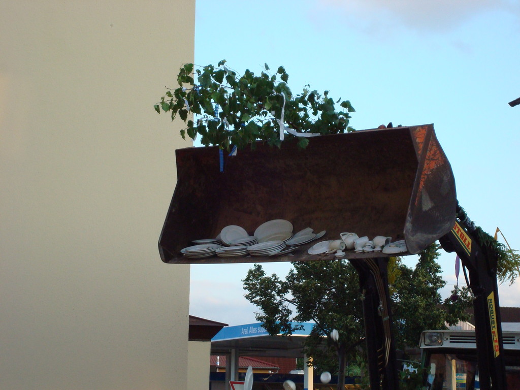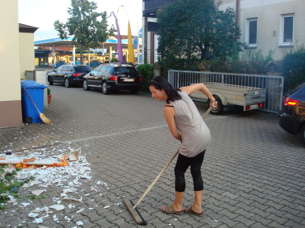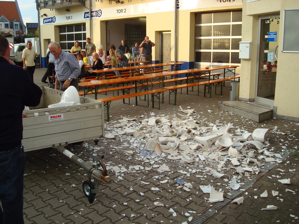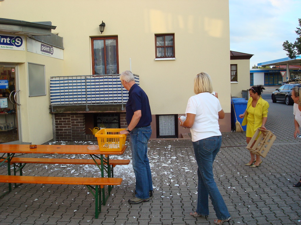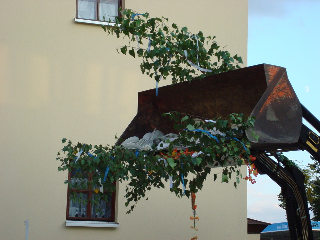 Heute wurden wir mit einem supergeheimen Polterabend überrascht. Gudula hatte die Idee dazu, Jan organisierte alles, Kalle machte das Catering und wir waren sprachlos als auf einmal ca. 40 Freunde im Hof mit Porzellan und Geschirr um sich warfen. Vielen "Dank" auch an Kalle für eine ganze Ladung aus dem Traktor. Da fällt mir doch wieder ein guter englischer Spruch ein: "I believe I spider."