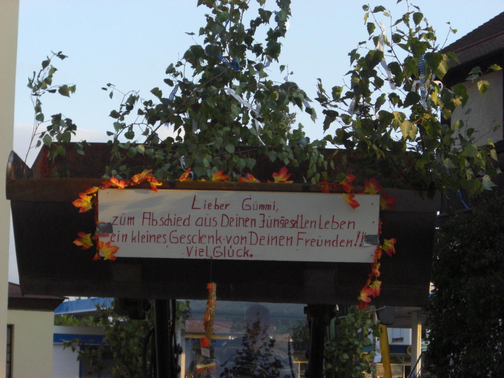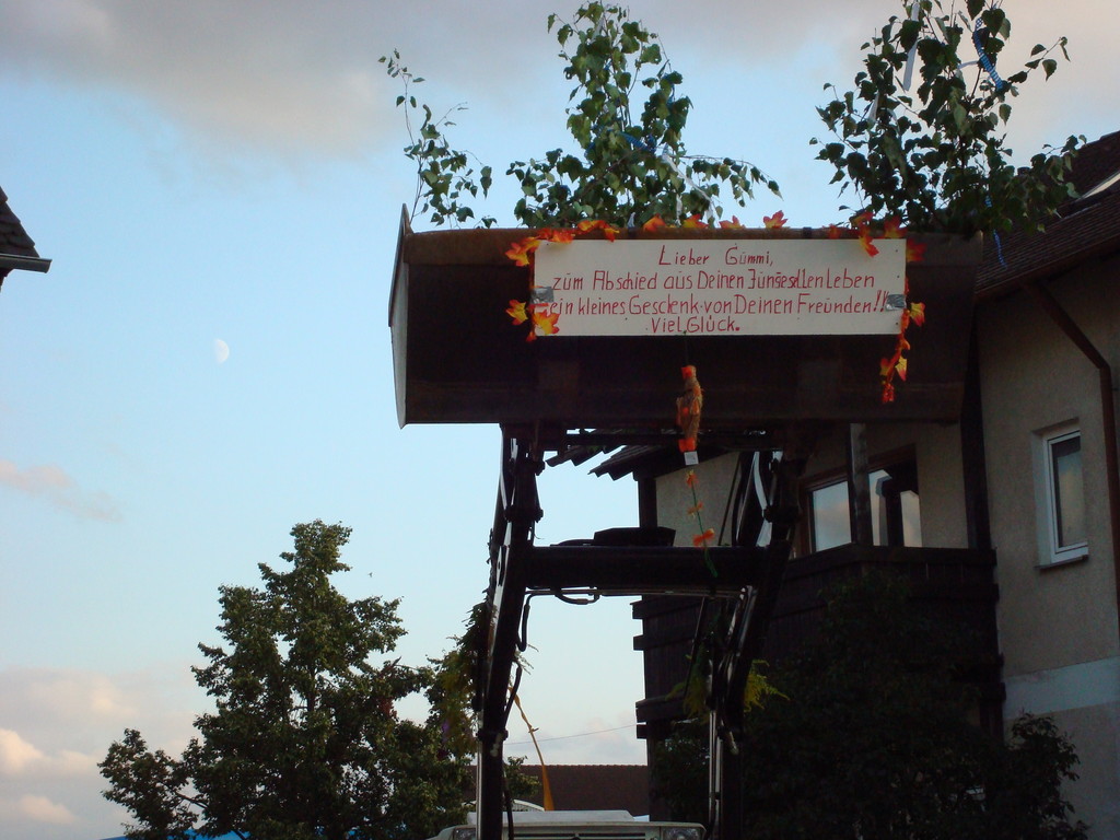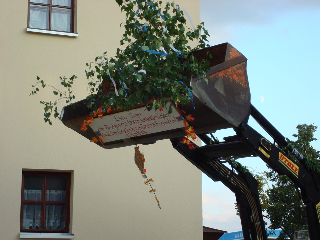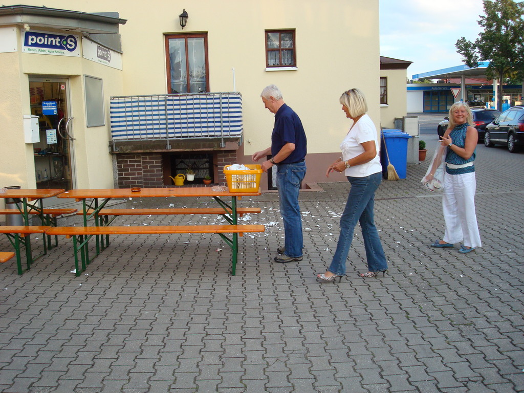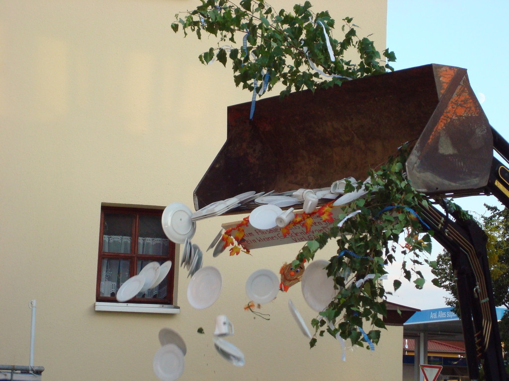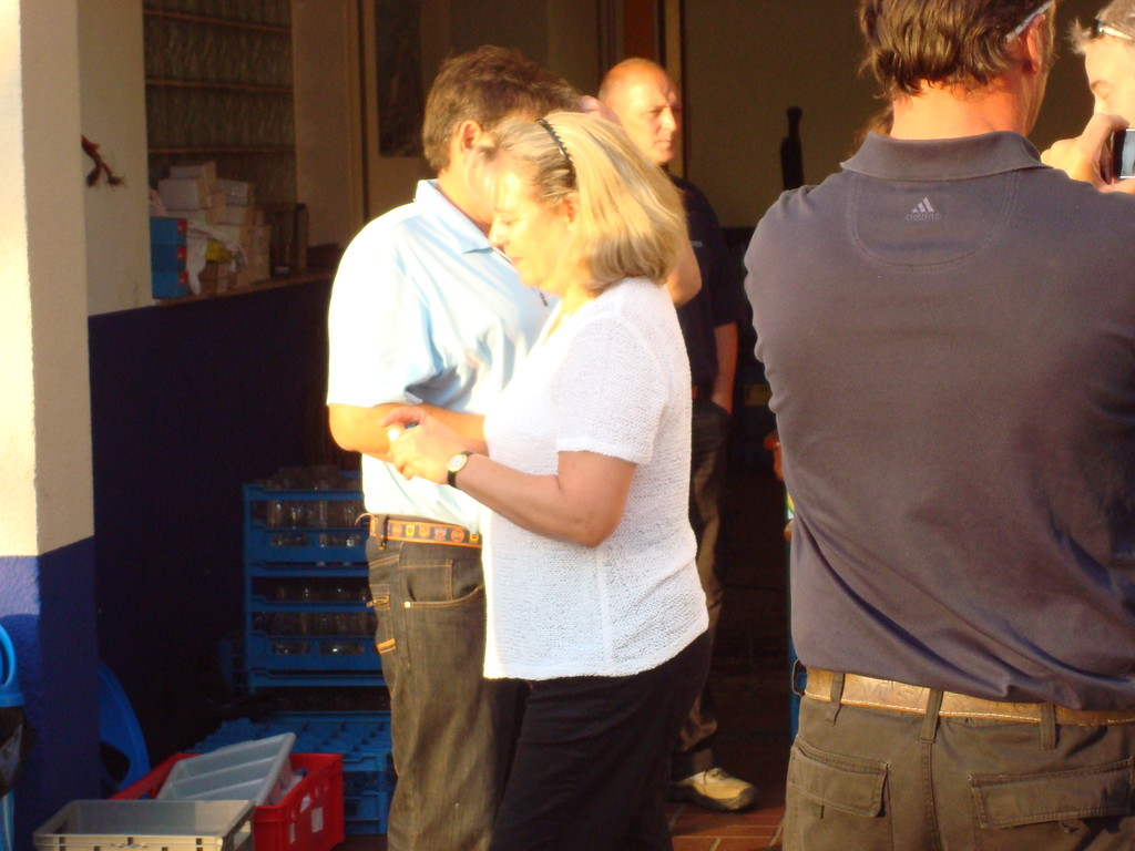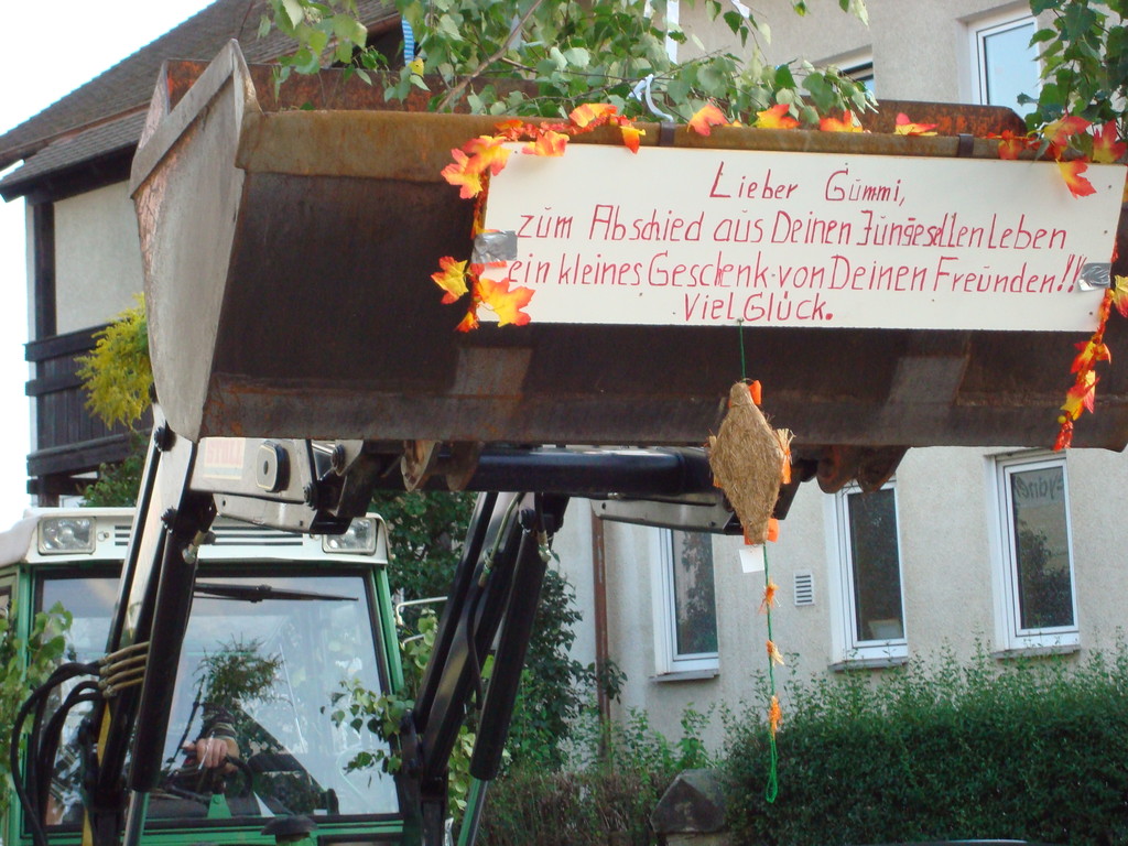 Heute wurden wir mit einem supergeheimen Polterabend überrascht. Gudula hatte die Idee dazu, Jan organisierte alles, Kalle machte das Catering und wir waren sprachlos als auf einmal ca. 40 Freunde im Hof mit Porzellan und Geschirr um sich warfen. Vielen "Dank" auch an Kalle für eine ganze Ladung aus dem Traktor. Da fällt mir doch wieder ein guter englischer Spruch ein: "I believe I spider."