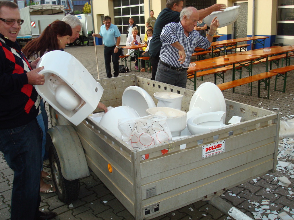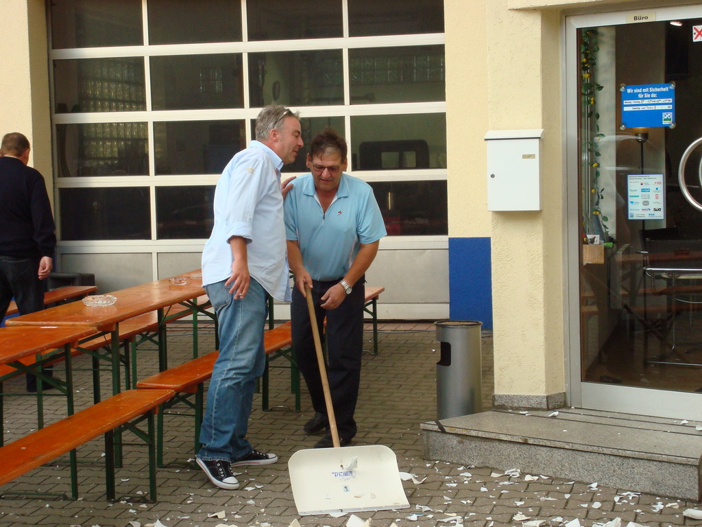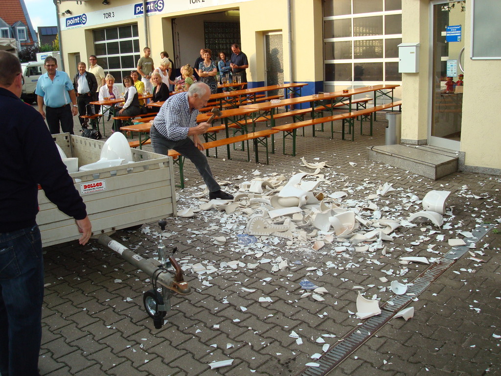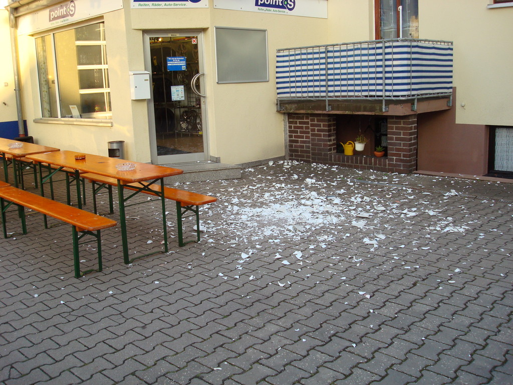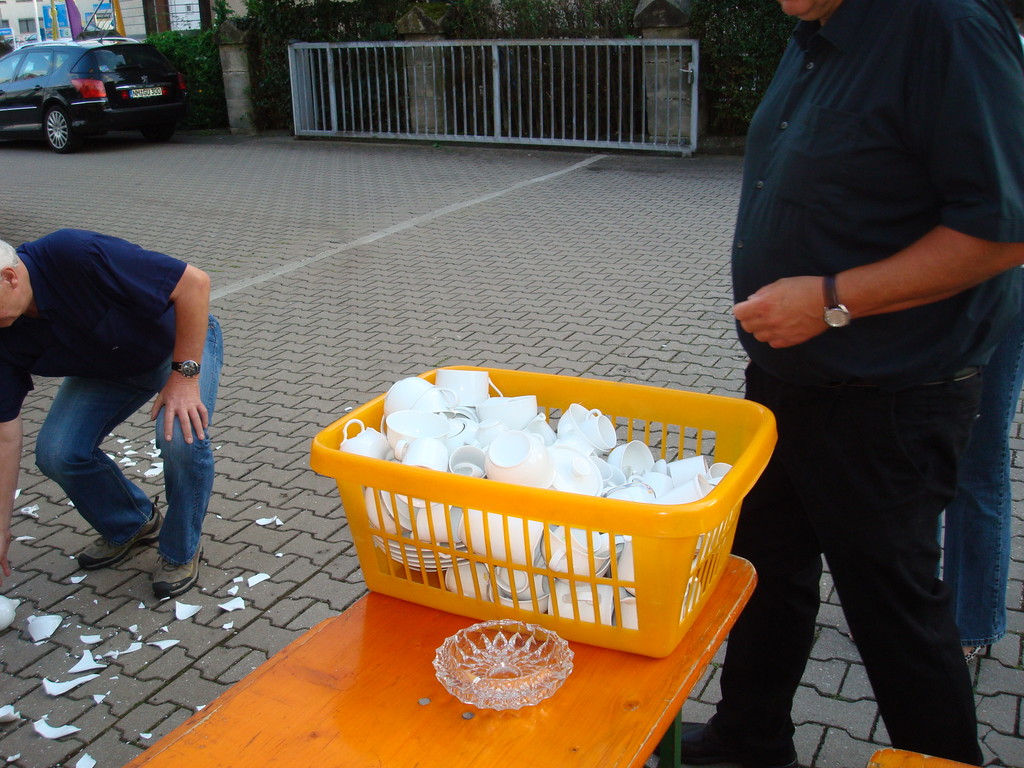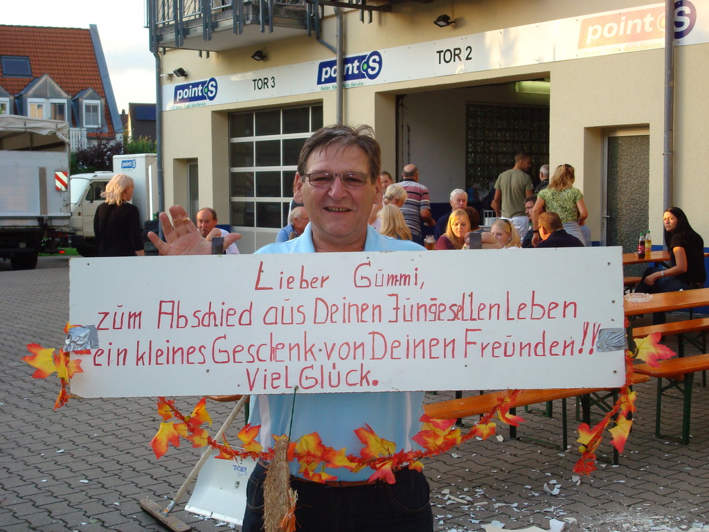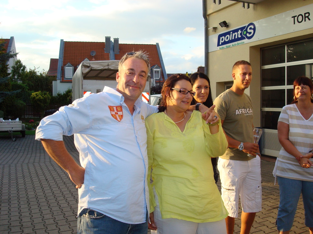 Heute wurden wir mit einem supergeheimen Polterabend überrascht. Gudula hatte die Idee dazu, Jan organisierte alles, Kalle machte das Catering und wir waren sprachlos als auf einmal ca. 40 Freunde im Hof mit Porzellan und Geschirr um sich warfen. Vielen "Dank" auch an Kalle für eine ganze Ladung aus dem Traktor. Da fällt mir doch wieder ein guter englischer Spruch ein: "I believe I spider."